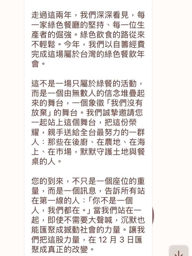 12/3綠餐認證頒獎典禮授勳儀式,捷鑫成為台灣第一間獲此殊榮認證的雞肉品牌